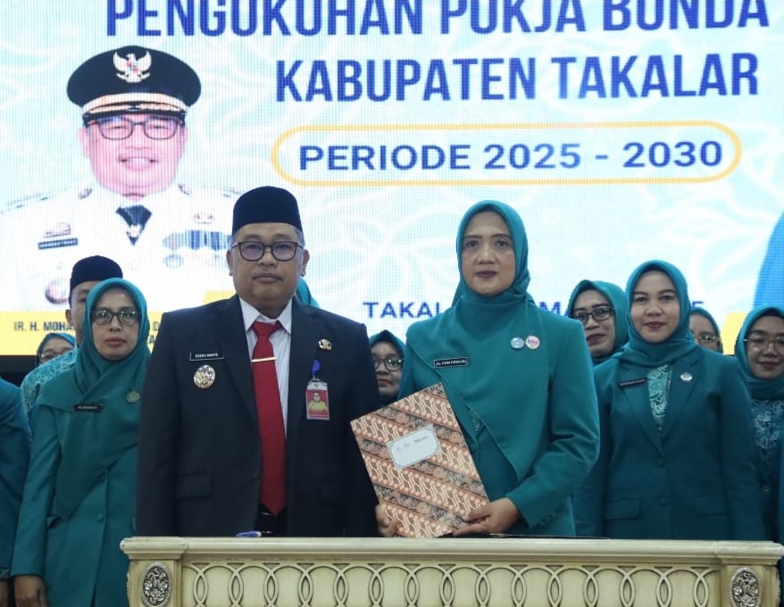 Proses pelantikan Pengurus PKK Kab. Takalar Masa Bakti 2025-2030 dirangkaian dengan Pengukuhan Pokja Bunda PAUD Kab. Takalar berlangsung di Ruang Pola Kantor Bupati Takalar.