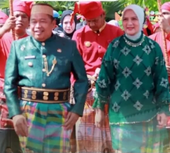 Dengan mengenakan pakaian adat berwarna hijau lengkap dengan songkok guru, Bupati Takalar dan istri tampil anggun dan penuh wibawa. Kehadiran keduanya disambut langsung oleh Bupati Gowa.